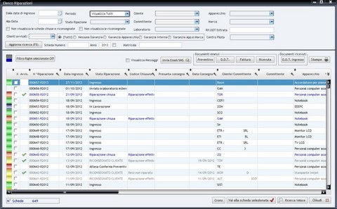 Dopo l'inserimento della matricola il programma in automatico controlla se l'apparecchio è già stato nel vostro laboratorio visualizzando il numero di scheda e la data di entrata, con un semplice clic puoi andare alla scheda relativa.